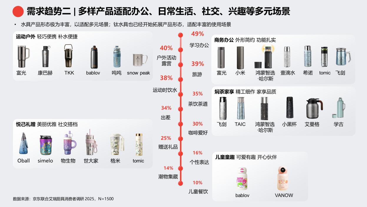 水具由于可以随身携带,和日常生活的联系更紧密,钛水具也已经有适配多元场景的丰富产品形态,未来还有发挥更多情绪价值的机会。