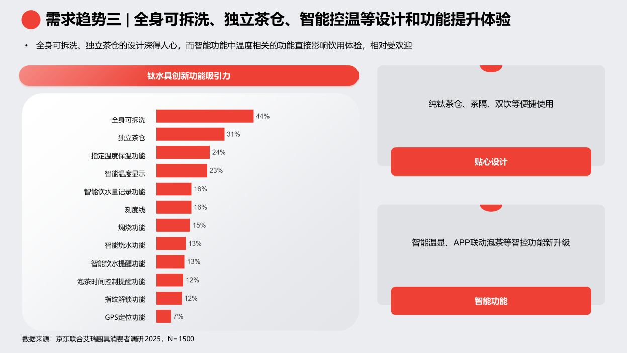●钛锅具和钛水具的消费者未来需求各有侧重。