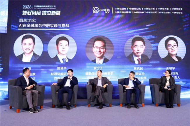 在《AI 在金融服务中的实践与挑战》圆桌讨论环节,中诚信指数、中诚信征信董事长毛赛与财通证券研究所固收负责人隋修平,德勤华永会计师事务所( 特殊普通合伙) 合伙人俞宁子,申港证券信息技术部总经理蒋庆民,中诚信国际数智化负责人王晓宇展开讨论。各位嘉宾深入讨论了AI 能力底层逻辑与应用约束、AI 应用场景选择关键因素、AI 实践中面临的关键挑战。