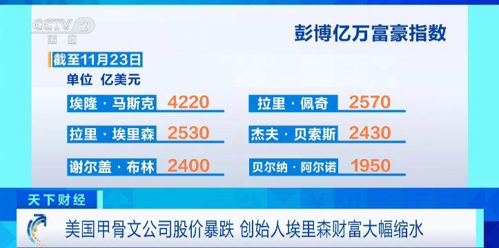 (央视财经《天下财经》)受人工智能热潮推动,美国数据库软件供应商甲骨文公司股价曾于9月出现暴涨,一度推动公司创始人拉里·埃里森成为全球首富。不过此后甲骨文股价下挫,埃里森个人财富大幅缩水,目前他在彭博亿万富豪指数榜上的排名已被谷歌联合创始人拉里·佩奇超越。