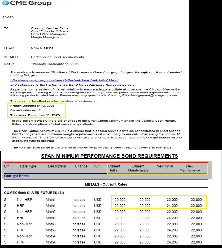 但这场繁荣在2011年戛然而止——当时芝加哥商品交易所(CME)在短短九天内五次上调白银保证金要求。下图清晰呈现了白银保证金要求翻倍的过程及其对价格的毁灭性冲击。