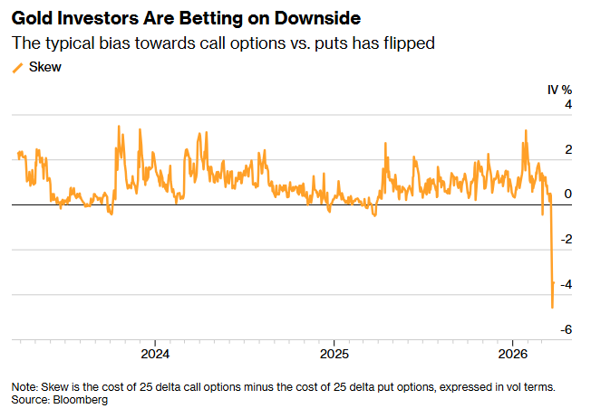 一些投资者通过期权押注金价下跌,其中一位投资者本周早些时候在最大的黄金支持的ETF上花费了超过1亿美元购买看跌期权。看跌期权赋予买方以预定价格卖出的权利,投机者用它来押注价格下跌,而矿商则用它来锁定高价。本周,买入看跌期权的成本相对于买入同等看涨期权的成本跃升至六年高点。