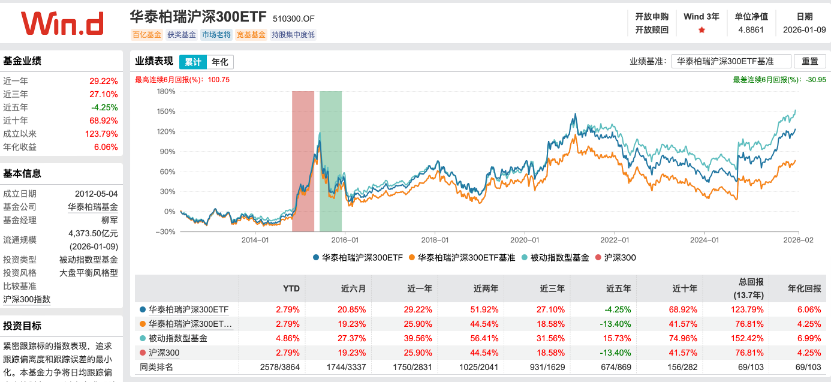 就在1月8日,华泰柏瑞旗下这只沪深300ETF刚刚完成更名,场内扩位简称调整为“沪深300ETF华泰柏瑞”,加上管理人名称的这一调整,让不少投资者再次注意到这只成立14年之久的产品,伴随着2026年开年首周的火热行情,该基金1月9日成交额创阶段性新高,近一周累计净流入32.94亿元。