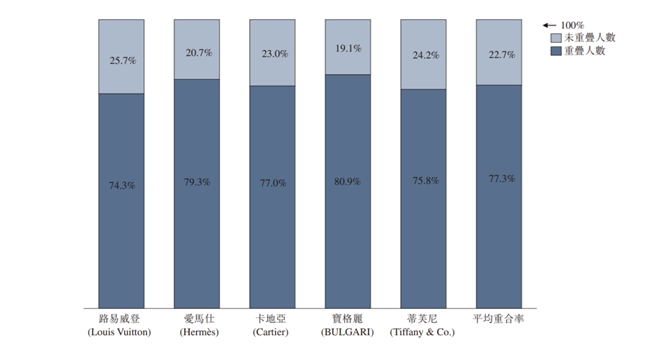 最新半年报披露,老铺黄金消费者与路易威登、爱马仕、卡地亚、宝格丽、蒂芙尼等国际五大奢侈品牌的消费者平均重合率高达77.3%。这一数据表明老铺黄金在高端消费市场持续抢占份额,品牌高净值客户群不断扩大。