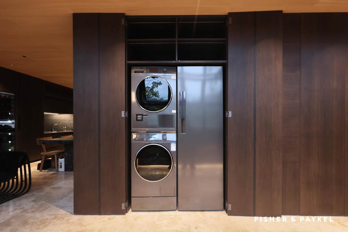 往店内深处走,便自然过渡到悦己洗护专区。独立的空间设计,保证私密性的同时,与整体门店风格无缝衔接。柜体内嵌入的洗衣机与烘干机,门板与柜体门板完全统一,实现完美隐藏。在这里,可灵活定制洗涤方案,精准控温与智能洗护技术,能妥善护理羊绒衫、真丝睡衣等高端面料;SmartDrive™直驱变频科技还能有效降低噪音,带来静谧舒适的洗护体验。