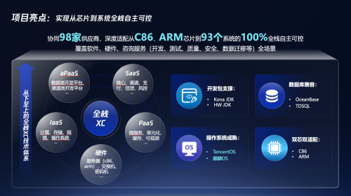 四川银行新一代的历程是三年,2022年5月启动咨询规划,2023年9月基于全融合创新技术栈构建云平台、分布式数据库等基础平台,同步启动支付、核心、渠道、信投等13个项目群建设。2025年5月25日,通过采用商业版融合创新开发工具包(Kona JDK、其他)、操作系统(云上TencentOS、云下其他)、多模分布式数据库(TDSQL、其他),打造硬件统一。在硬件统一基础上,基于分布式、云原生、微服务、大数据的技术路线,协同98家供应商,最终实现93个业务系统100%全面自主可控。