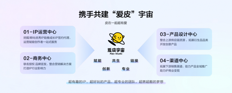 在传统的IP开发模式中,创意策划、内容运营、合作宣发、产品研发、销售渠道等环节往往相互割裂,形成“产业孤岛”,严重制约IP的系统价值。区别于单打独斗的传统业态,“爱皮宇宙”坚定定位于IP行业的“连接器”,致力于构建一个开放、协同、共生的生态平台。卢洁表示,“通过无缝连接IP创作者、内容生产者、品牌方、渠道商乃至最终用户,让生态中的每位参与者都能找到自己位置,实现价值共创与共享。”