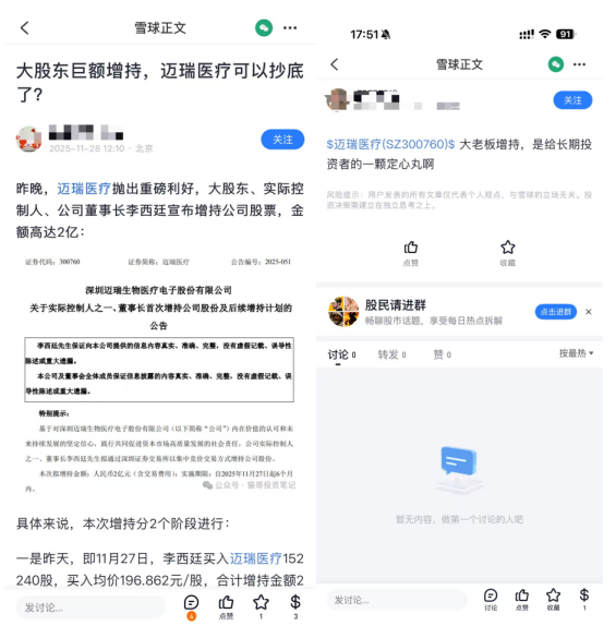 值得注意的是,11月28日,迈瑞医疗高级副总经理李在文便同步跟进增持公司股份,以203.52元/股的成交均价通过竞价交易买入1.47万股。高管接连出手形成信心接力,既印证了核心管理团队对公司内在价值的高度认同,也向市场传递出对未来发展前景的坚定信心,进一步点燃了投资者的关注热情。