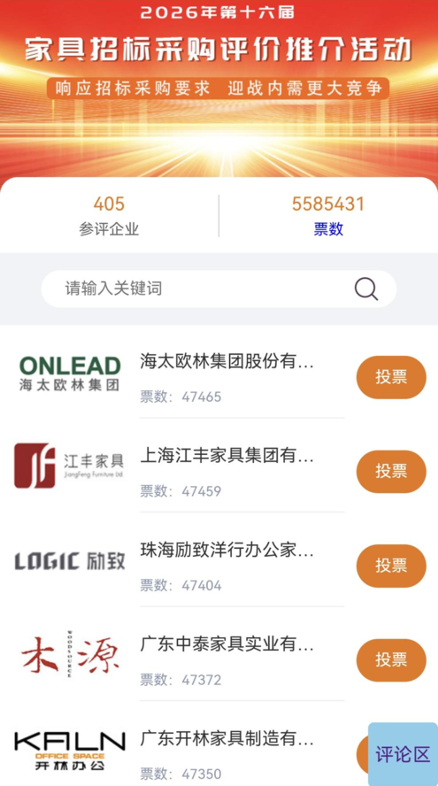 为助力优秀诚信的家具供应商进一步提升品牌价值和强化品牌优势,在招标采购市场中获得更多的份额,中国采购与招标网、中国名企排行网联合主办了以“响应招标采购要求、迎战更大内需竞争”为主题的“2026(第16届)家具招标采购评价推介活动”。活动现已进入白热化的网上展示和投票阶段。主办单位现发布活动第二期情况通报。