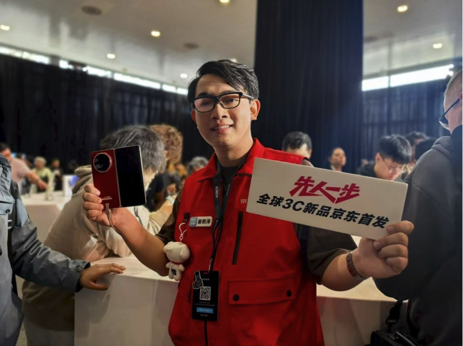 MWC 2026开幕前夕,荣耀Magic V6全球首发,荣耀Robot Phone正式亮相。其中,荣耀Magic V6薄至8.75mm,轻至219g,同时搭载7150mAh青海湖刀片电池,兼具轻薄与续航。在活动现场,荣耀折叠屏产品经理为京东采销及直播间的观众介绍新机,并由京东采销现场测试荣耀Magic V6强悍的防水性能以及荣耀Robot Phone优异的拍照能力。