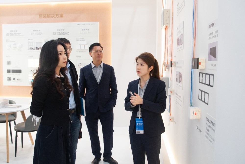 针对行业关注的存量房市场升级需求,鸿蒙智家的后装解决方案·工法区直观展示了 “不破墙、免布线”的快速智能化改造能力。通过一面完整的工艺展示墙,向观众清晰揭示了如何在不破坏现有装修的前提下,依托PLC、Wi-Fi、蓝牙、星闪™等稳定可靠的连接技术,在24小时内实现全屋灯光、遮阳、安防、网络等子系统的智慧升级,真正做到“当天装、当天用”,有力响应了博览会对“老房子改造”的专题展示号召。