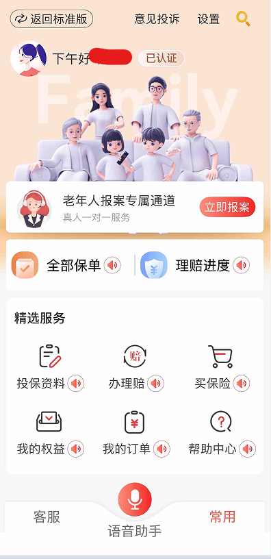 在金融保险领域,适老化改造同样稳步推进。中国人保的官方APP推出的关爱版,也是行业内颇具代表性的适老实践。该版本聚焦老年用户使用习惯,放大字体与图标、精简操作步骤,保留保单查询、理赔报案等高频服务,搭配语音播报与便捷客服,降低老年人使用难度。同时遵循无广告、无诱导的规范要求,界面清爽,不仅方便长辈使用,也被不少年轻用户选为日常办理保险业务的简洁选项。