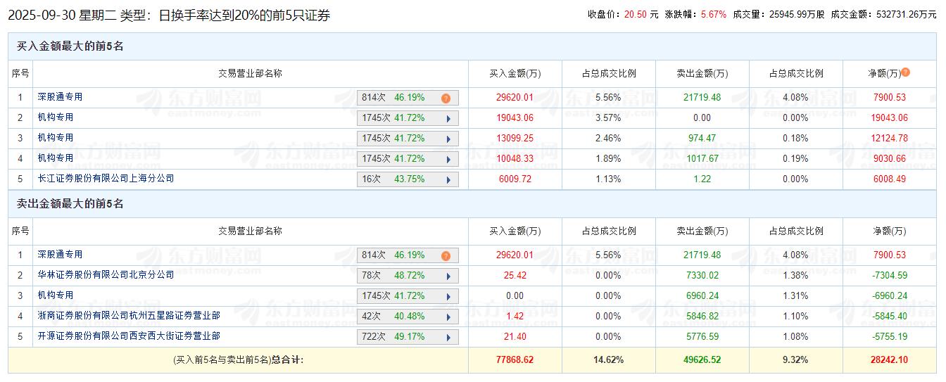 龙虎榜数据显示,多氟多为日换手率达到20%的前5只证券,买入该股金额最大的前5名中,3家为机构专用席位。卖出该股金额最大的前5名中,1家为机构专用席位。经统计,机构席位今日买入多氟多净额为33238.26万元。