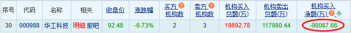 龙虎榜数据显示,买入华工科技金额最大的前5名中,2家为机构专用席位;卖出华工科技金额最大的前5名中,2家为机构专用席位。经统计,机构席位今日卖出华工科技净额为98087.66万元。