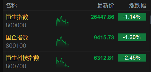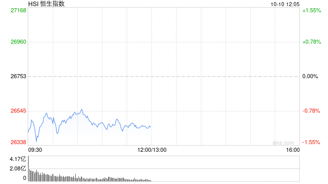 格隆汇10月10日|港股上午盘三大指数集体下挫,恒生科技指数跌幅最大,午间收跌2.45%险守6300点,恒生指数、国企指数分别下跌1.14%及1.2%,恒指、恒科指均录得5连跌行情。