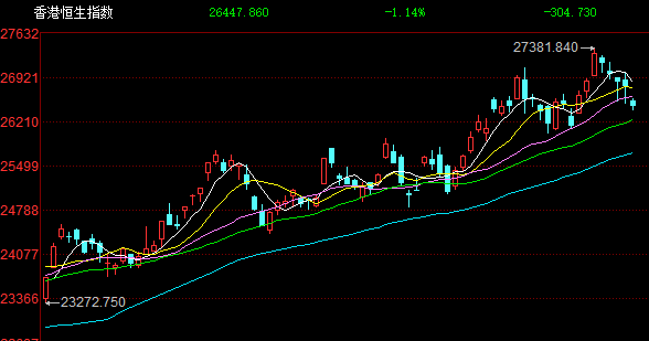盘面上,作为市场风向标的大型科技股集体走低,其中,百度跌5.39%,阿里巴巴跌近4%,腾讯、小米跌近3%,京东、美团跌超1%;半导体芯片股、锂电池股、黄金股等热门板块全线回落,其中,赣锋锂业(002460)跌超8%,宁德时代(300750)跌超7%,中芯国际、中国黄金国际跌幅明显;苹果概念股、光伏股、稳定币概念股、濠赌股、生物医药股、汽车股纷纷下跌。