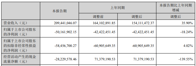 琏升科技已连亏7年半。2018年至2024年及2025年上半年,琏升科技归属于上市公司股东的净利润分别为-3.46亿元、-2.57亿元、-0.69亿元、-0.25亿元、-0.32亿元、-0.40亿元、-1.10亿元、-0.50亿元。