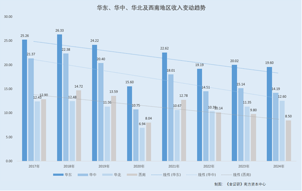 2.4 主要市场华东华中等地区收入规模持续“萎缩”,华南等新市场拓展或“停滞不前”