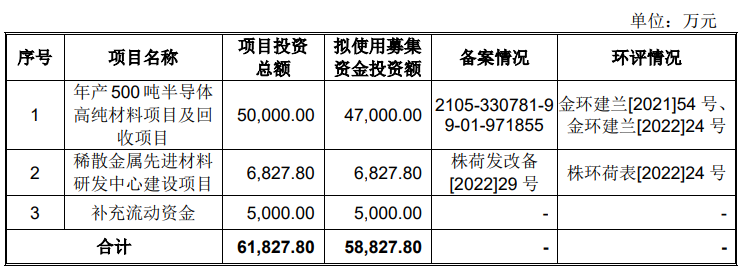 株洲科能原拟在上交所科创板公开发行股份数量股不超过36,000,000股,且不低于发行后总股本的25%。株洲科能原拟募集资金58,827.80万元,用于年产500吨半导体高纯材料项目及回收项目、稀散金属先进材料研发中心建设项目、补充流动资金。