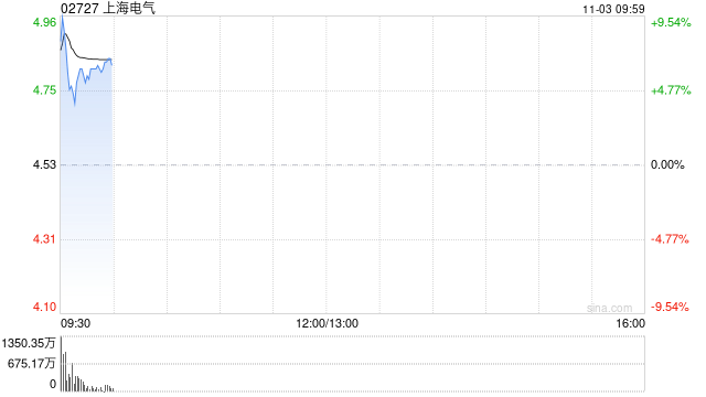 上海电气(02727)早盘一度涨超9%,截至发稿,股价上涨7.06%,现报4.85港元,成交额4.05亿港元。