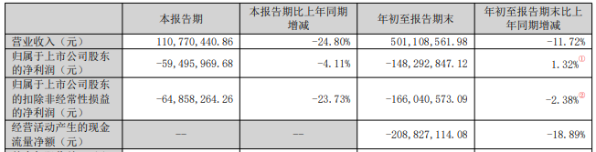 东土科技2025年前三季度实现营业收入5.01亿元,同比下降11.72%;归属于上市公司股东的净利润-1.48亿元,归属于上市公司股东的扣除非经常性损益的净利润-1.66亿元,经营活动产生的现金流量净额-2.09亿元。