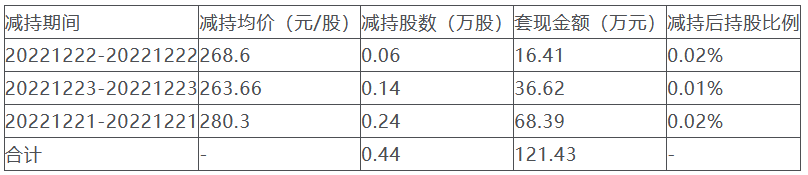两名股东合计减持不超过2,721,400股,即不超过公司总股本的2.01%。按上一交易日公司收盘价200.05元计算,上述股东拟减持套现合计约544,416,070元。其中,控股股东芯华控股拟套现约542,135,500元。