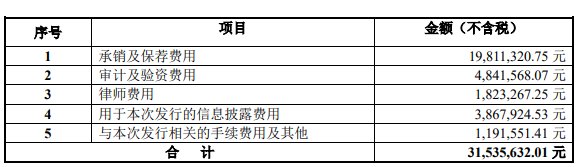神马电力上市发行费用为31,535,632.01元,其中承销及保荐费用19,811,320.75元。