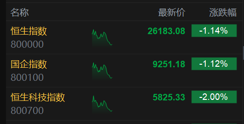 格隆汇11月7日|隔夜美股科技股再遭猛烈抛售,影响亚太股市集体走低。港股三大指数低开低走,截止午盘,恒生指数跌1.14%,国企指数跌1.12%,恒生科技指数跌2%。作为市场风向标的权重科技股集体弱势,小米跌超3%,京东、腾讯、美团、阿里巴巴均跌超2%;昨日反弹的半导体股再度弱势走低,中资券商股、汽车股、重型机械股、苹果概念股齐跌。另外,金价重回4000美元,黄金股继续上涨,光伏反内卷获重大进展,光伏太阳能(000591)股集体强势,三桶油继续上涨行情。(格隆汇)