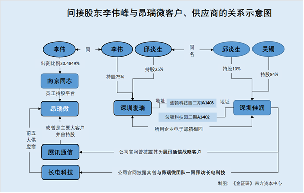 可见,2016年12月,李伟峰作为外部投资人,通过昂瑞微员工持股平台南京同芯入股昂瑞微。而一家名为深圳麦瑞思的公司,其控股股东名为李伟峰。