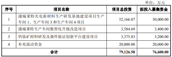中国经济网北京11月17日讯 莱特光电(688150.SH)11月17日披露的向不特定对象发行可转换公司债券预案显示,本次发行可转债募集资金总额(含发行费用)不超过人民币76,600.00万元(含本数),扣除发行费用后的募集资金净额将用于以下项目:“蒲城莱特光电新材料生产研发基地建设项目生产车间1、生产车间3和生产车间4项目”“蒲城莱特生产车间数智化升级改造项目”“钙钛矿材料研发及器件验证创新平台建设项目”“补充流动资金”。