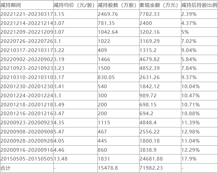 据新浪财经,数据显示,陈冬琼最初持股2.41亿股,占总股本的19.37%。陈冬琼从2015年5月5日起,第一次减持星辉娱乐股份,迄今为止,累计减持公司股票1.55亿股,累计套现约7.2亿元。