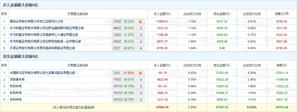 龙虎榜数据显示,今日,卖出航天发展金额最大的前五名中,有3家机构专用席位。经统计,航天发展的机构席位今日净卖出金额为29531.81万元。