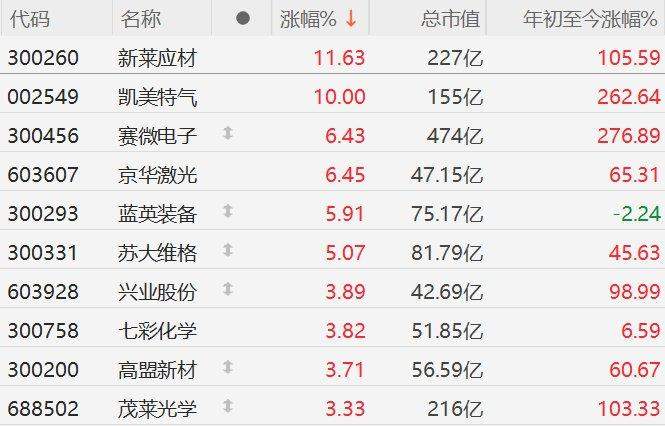 格隆汇12月18日|A股市场光刻机板块集体走强,其中,新莱应材(300260)涨超11%,凯美特气(002549)10CM涨停,赛微电子、京华激光(603607)涨超6%,蓝英装备(300293)、苏大维格(300331)涨超5%。