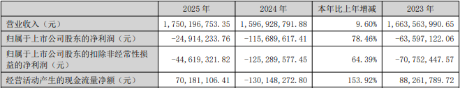 川润股份已连亏三年。2023年、2024年、2025年,川润股份的归属于上市公司股东的净利润分别为-6359.71万元、-1.16亿元、-2491.42万元;归属于上市公司股东的扣除非经常性损益的净利润分别为-7075.24万元、-1.25亿元、-4461.93万元。