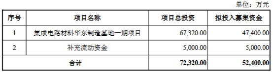 艾森股份公开发行募集资金总额为61,759.44万元,扣除发行费用后的募集资金净额为54,449.71万元。公司最终募集资金净额比原计划少16,627.12万元。艾森股份2023年12月1日披露的招股说明书显示,公司拟募集资金71,076.83万元,用于年产12,000吨半导体专用材料项目、集成电路材料测试中心项目、补充流动资金。